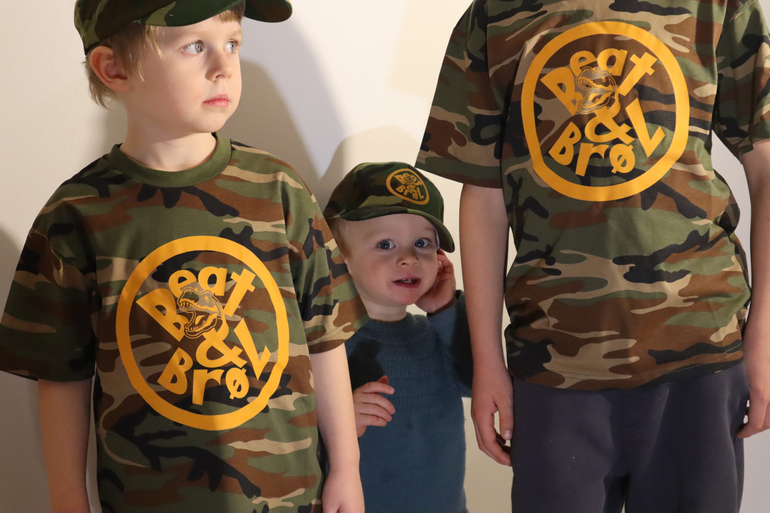 Sej Beat&BrøL camouflage-T-shirt. Perfekt, hvis du drømmer om at blive din helt egen DinoRanger 🦖 Fåes i tre størrelser.